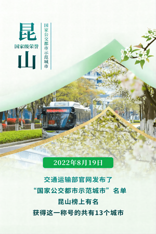 好消息!昆山榮獲“國(guó)家公交都市建設(shè)示范城市”稱號(hào)(2022/09/5)